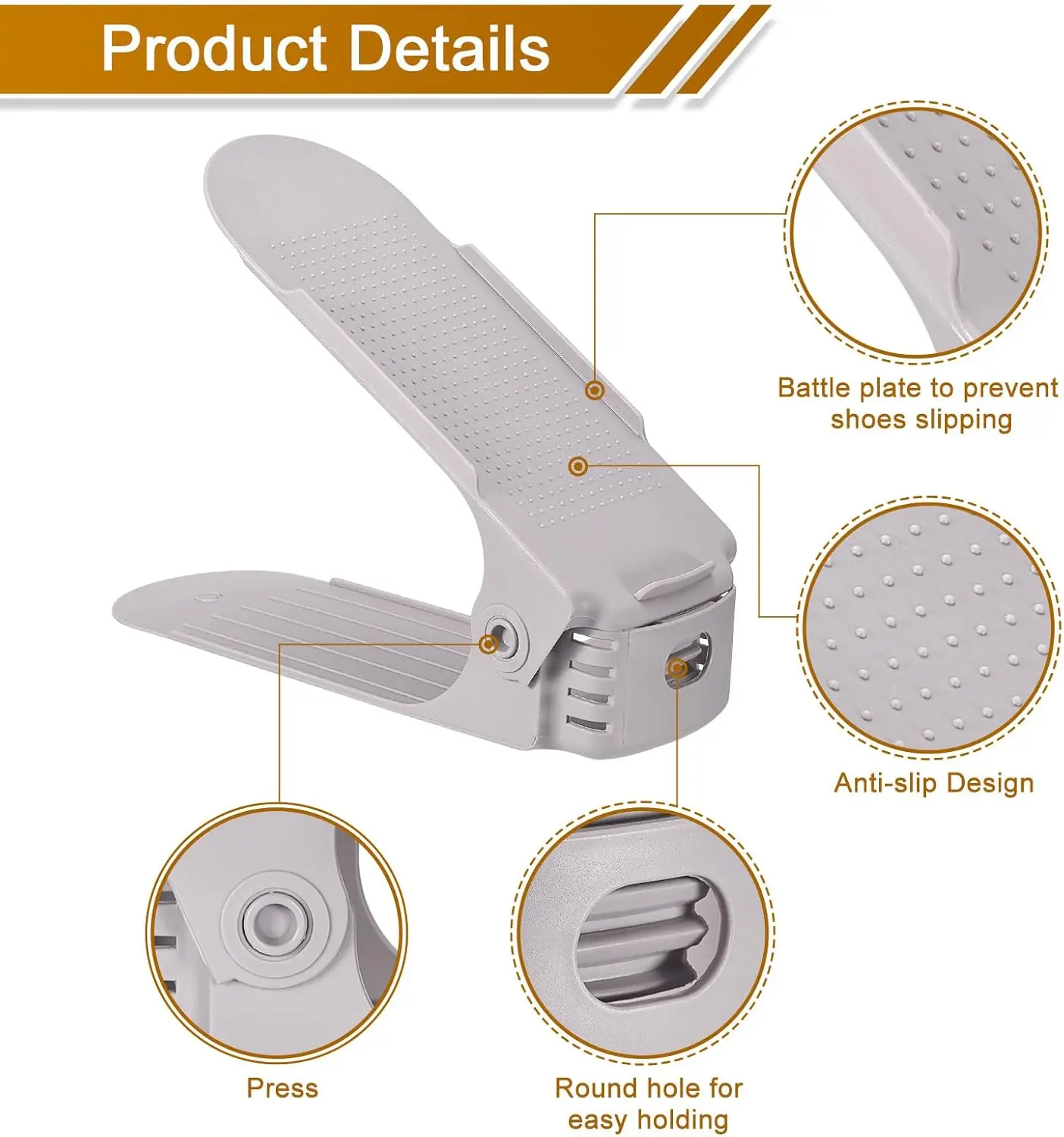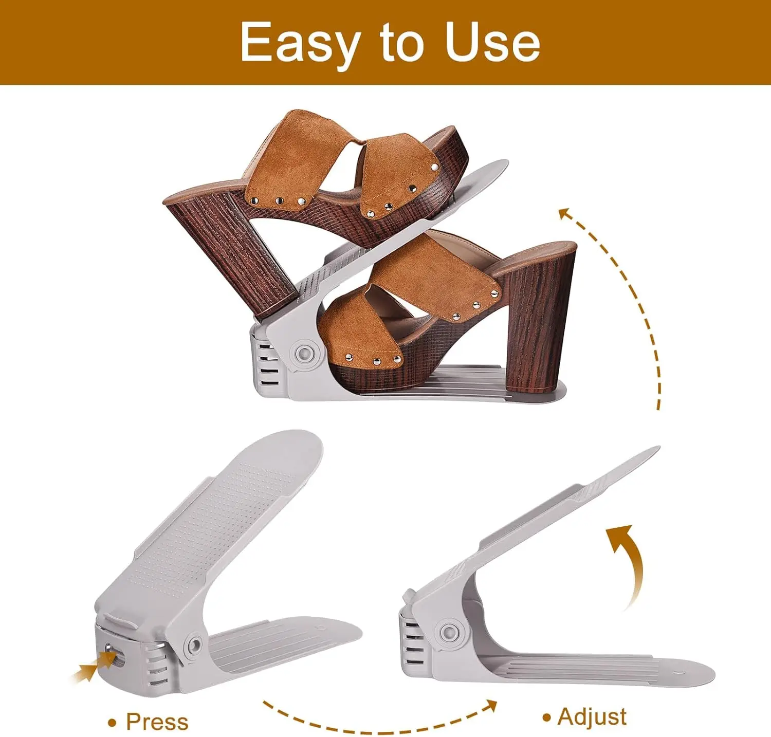 The shoe slots space saver enables you to hold twice as many shoes as before, providing an excellent space-saving solution for your bedroom, wardrobe, and shoe rack.