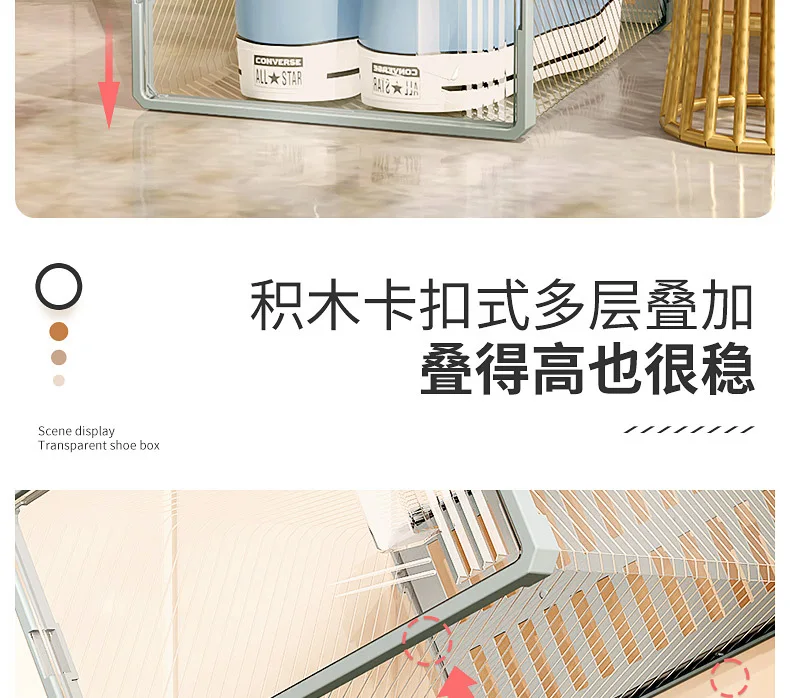 6Pcs/Set Transparent Shoe Box Living Room Shoe Cabinet Multi-Functional Storage Sneakers High Heels Storage Organizer
