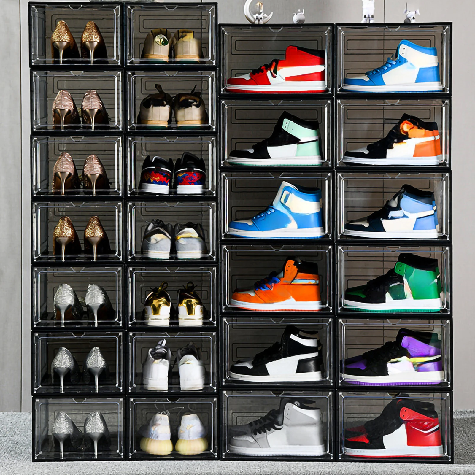 1, this shoe box is a household necessity, shoe lovers must have! The transparent design ensures that your collection is displayed from all angles, so you don’t need to open all the boxes to easily find the right shoes.